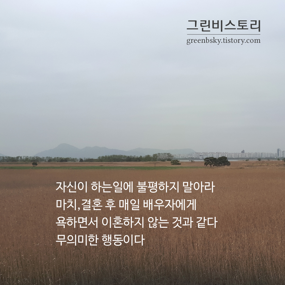 자신이 하는 일에 불평하지 말아라. 마치, 결혼 후 매일 배우자에게 욕하면서 이혼하지 않는 것과 같다.