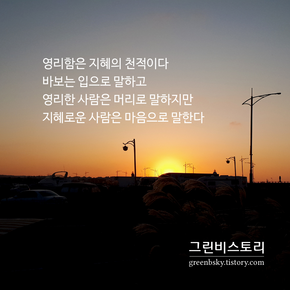 "영리함은 지혜의 천적이다. 바보는 입으로 말하고 영리한 사람은 머리로 말하지만 지혜로운 사람은 마음으로 말한다"