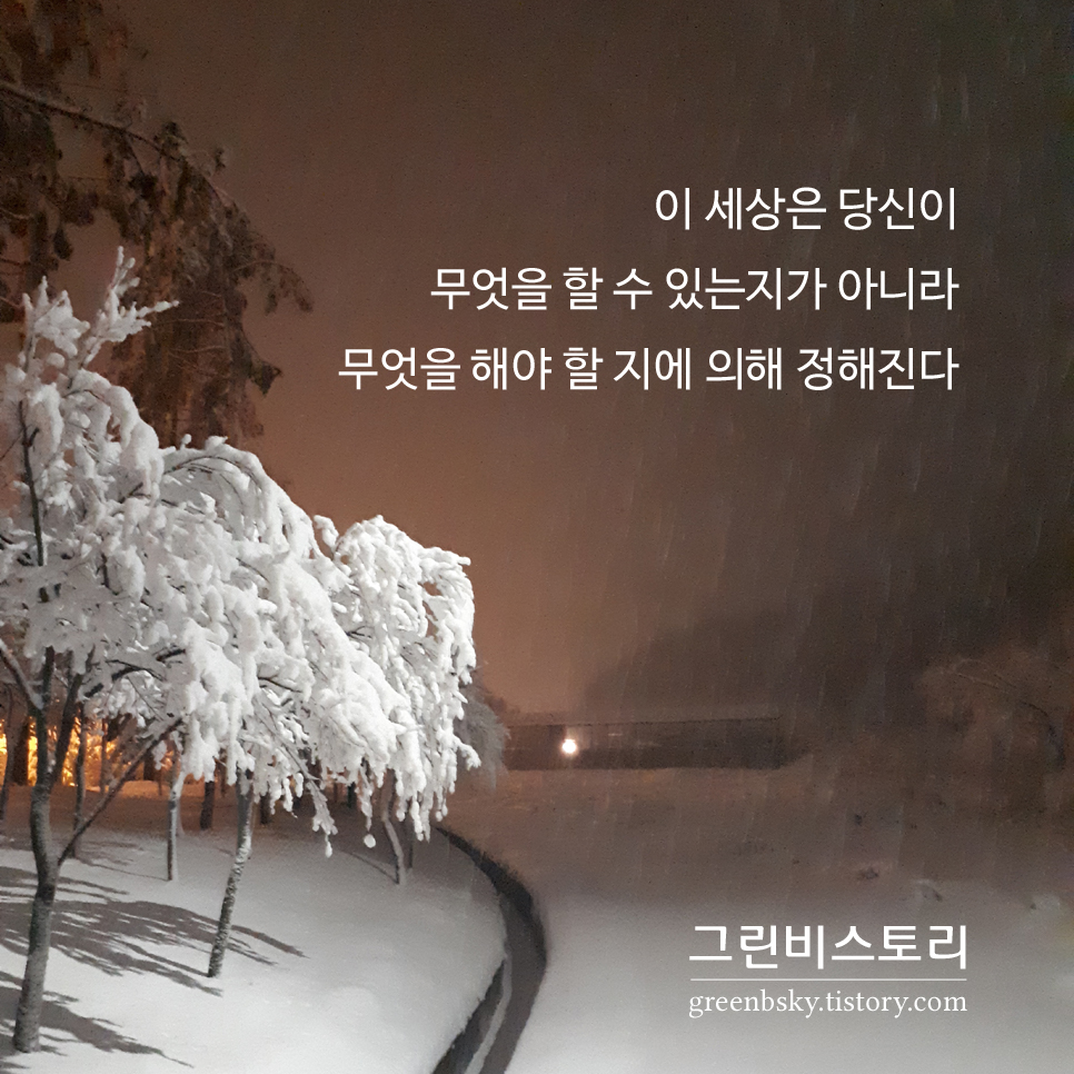 이 세상은 당신이 무엇을 할 수 있는지가 아니라 무엇을 해야 할 지에 의해 정해진다.