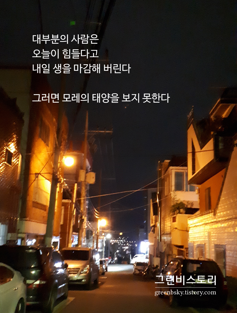 오늘과 내일이 힘들다고 해서 모레의 태양을 볼 수 없다는것은 서글픈 일이다.