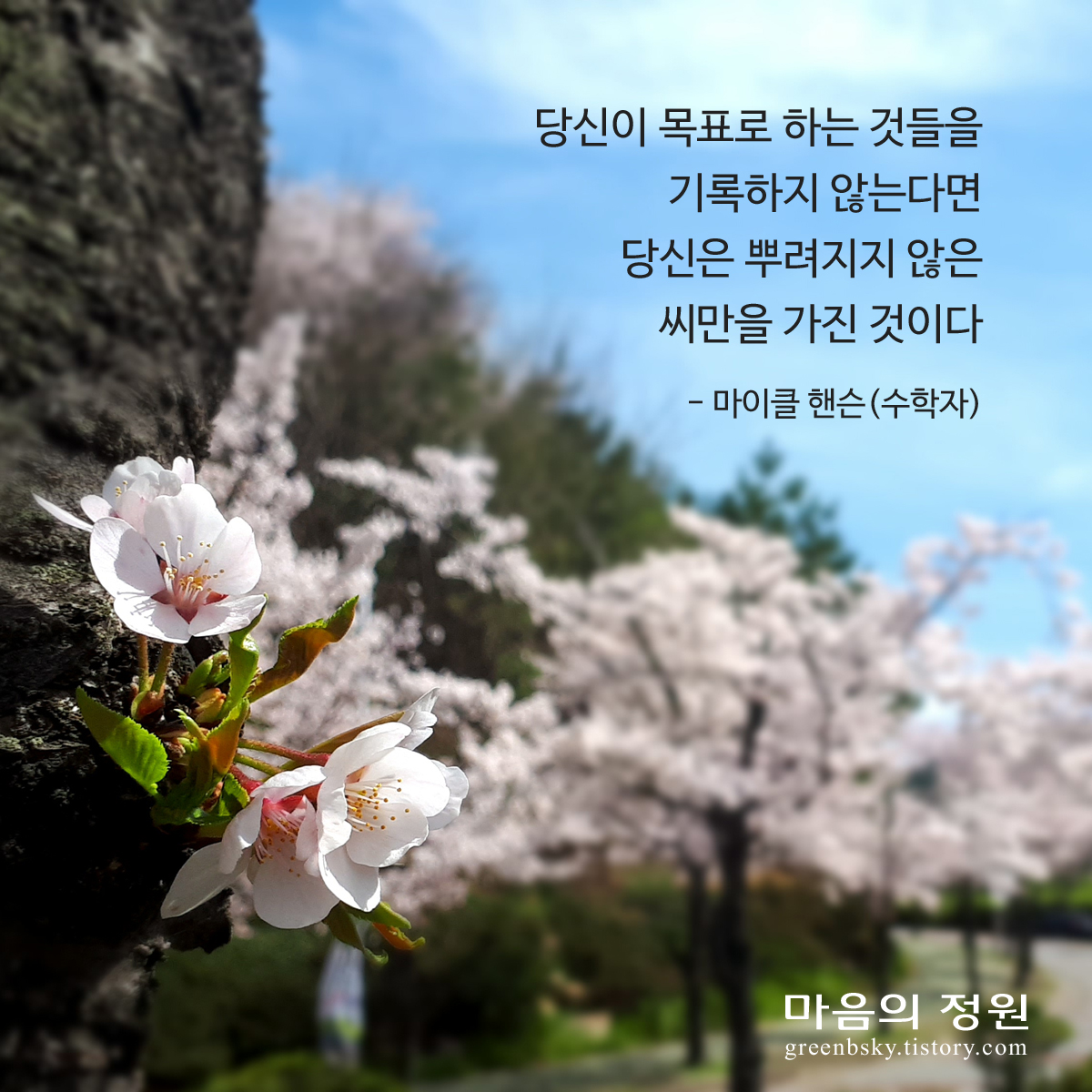 도전의 근원이 되는 희망 명언으로 제작된 이미지는 폰으로 촬영한 사진으로 제작, SNS 프로필 이미지 사용 시 하단 "그린비스토리"워터마크 임의적으로 훼손 및 변경 금지합니다.