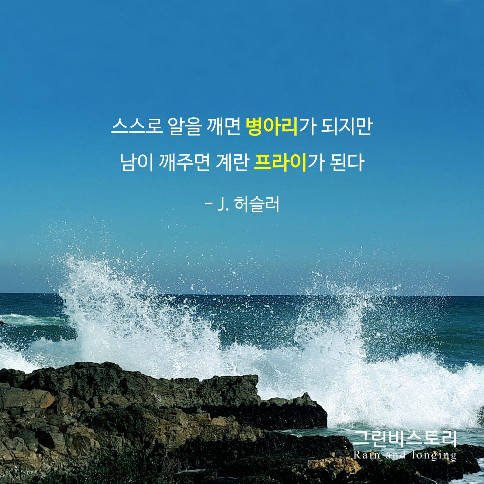 스스로 알을 깨고 나오는 도전적인 병아리가 될 것인가! 타인의 손에 허무하게 깨어지는 프라이가 될 것인가! 그 선택은 오로지 당신의 마음속에 있다.